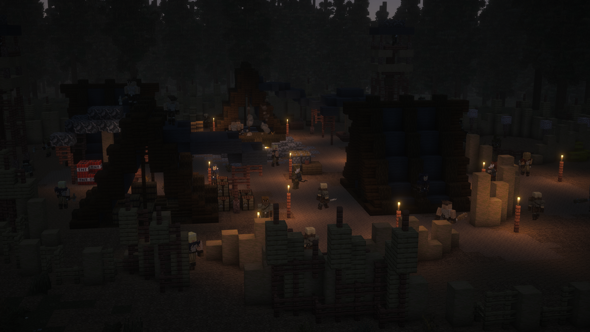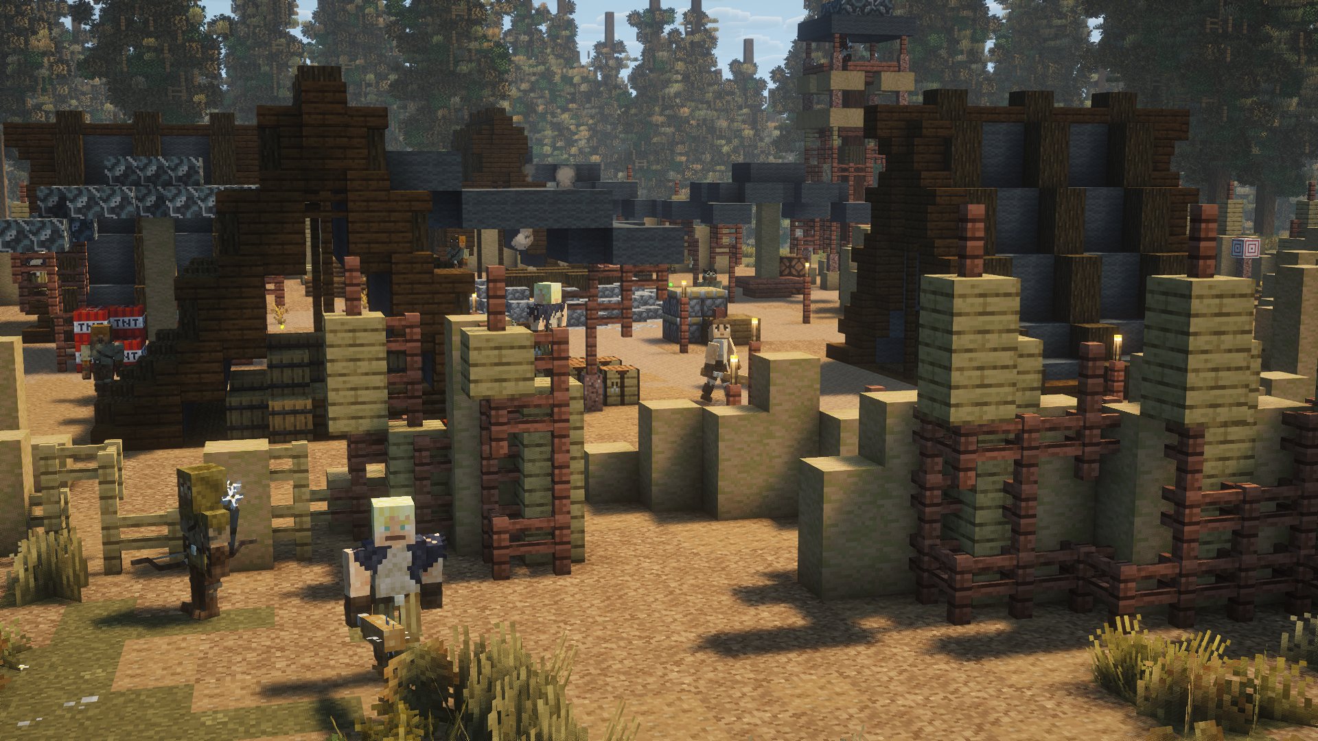 Everyone needs a place to live right? Bandits don't live underground in a bunker. They have a camp setup topside. When they're not out on a loot run, they're protecting their campsite. Fortified with exterior walls and 3 archer towers, each entrance is guarded by a pack of bandits. If you make it inside the walls, you won't last long without some serious gear and firepower — and maybe 1 or 2 friends covering you.